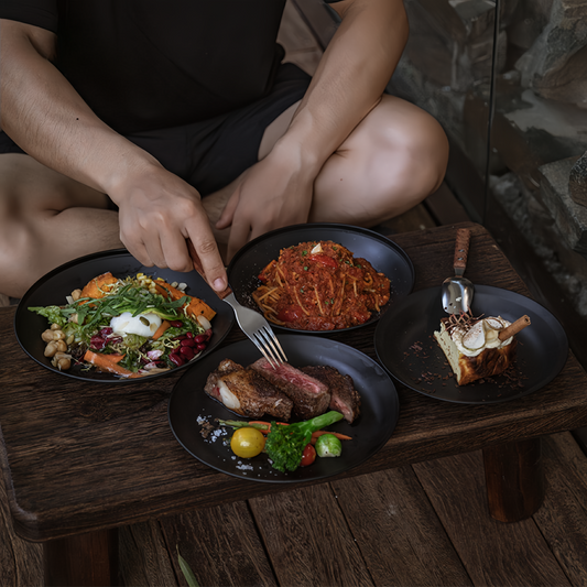 CAMPINGMOON Outdoor Black Stainless Steel Fruit Plate Camping Utensil Set with Portable Storage Bag.